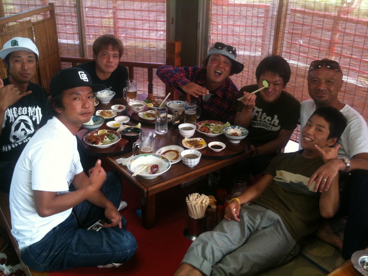 僕が行く時は必ず集まって来てくれるみんな(#^.^#)本当に感謝です ♪写真に載っていないメンバーも前夜に来てくれていました。波乗りの後の、昼飯。。。お店は、千畳ポイントのすぐ近くにあり、食べ物何処「四季亭」に併設してい […]