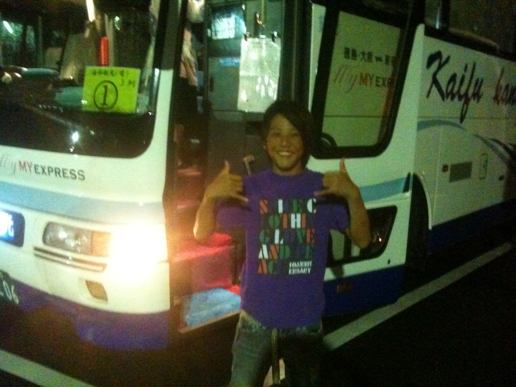 夜の高速バスでShunは湘南へ。徳島市内を19:30に出て明朝6時には新宿駅に、料金は¥6〜8,000とても安いし快適そうだ!Kirbyはフェリーで次の目的地へ。http://go-naminori.com/kirby/ […]