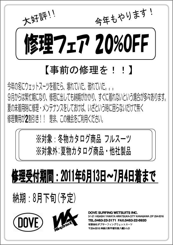 本日から、静岡県静波海岸で開催されます。スタートは8:30予定波のコンディションは腰〜腹のサイドオフです。弊社からの出場選手は21名。ヒート表はこちらからhttp://www.nsa-surf.org/heat(juni […]