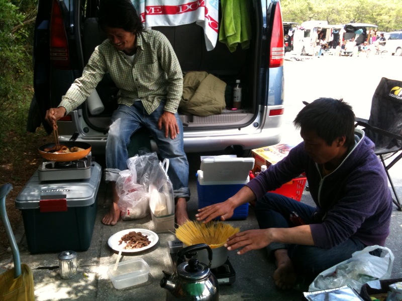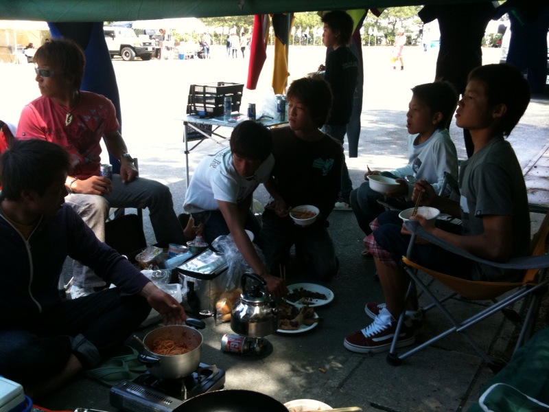 ウェイティングが重なり、ランチは自炊です!メニューは、諒大のお母さん差し入れのチキンと、原コーチお手製パスタなどなど。さぁ、みんな出来たぞー!Update from iPhone by NIShi…