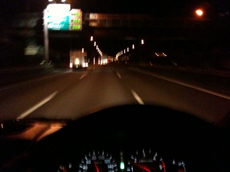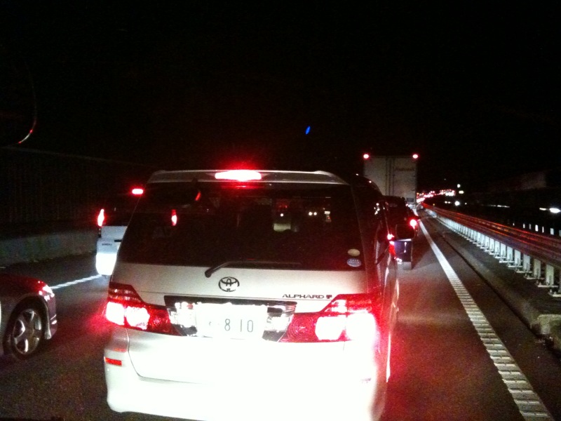 出発して45分。。。まさかの事故で大渋滞・・・ぜんぜん動きませ〜ん!せっかく空いてる夜中に出たのに。。この渋滞、軽く1時間はハマりそう。やはり、旅は何があるか分かりませんネ。by NISHI…