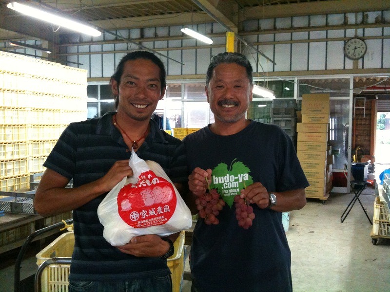 なんと、お土産に梨を頂いちゃいました。美味しいブドウも(笑)家城農園のオシャレなTーシャツを着てる家城さんと!ごちそうさまでした、家城さん‼by NISHI…