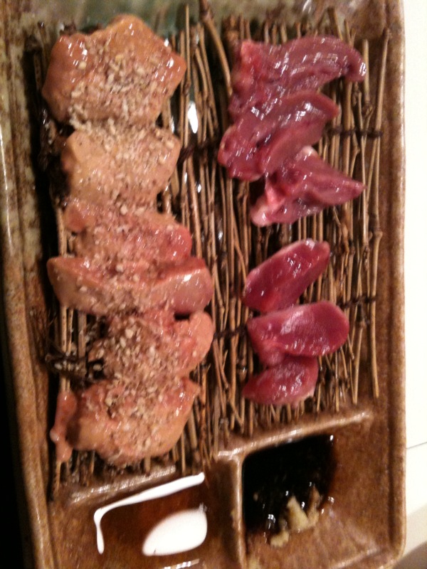 とり刺しです!こころ、ずり、きも。。。自分はあまり出会った事が無かったですが、旨い!!!by NISHI…
