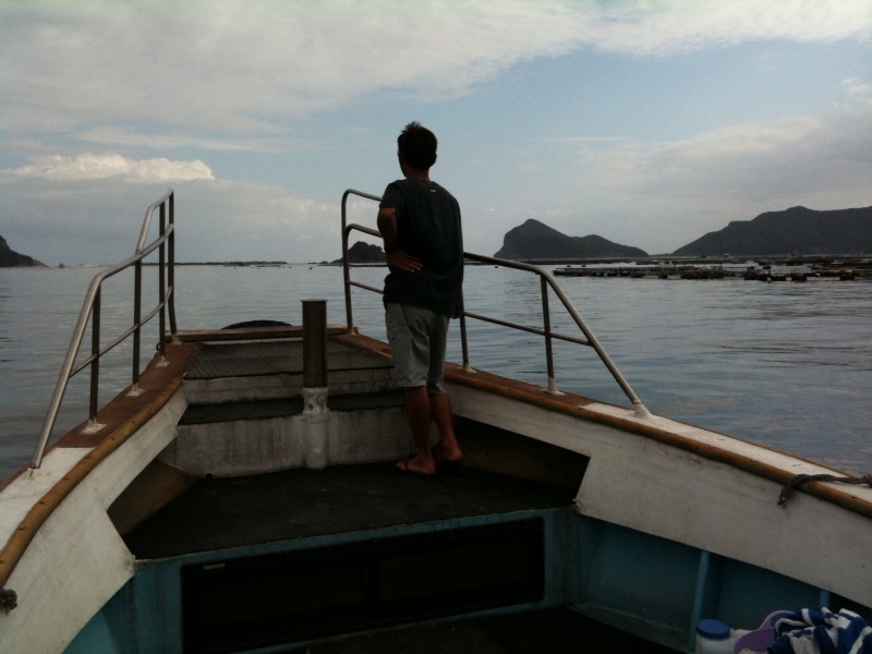 宮崎に滞在中、台風の影響でビーチはクローズアウトし、窪田プロと船で無人島の脇で割れる波を求めた時の模様は、後日アップ予定です。by NISHI…