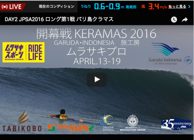 まず最初に、JPSA 第1戦ガルーダ・インドネシア 旅工房 ムラサキプロは、本日、メンズ・ウィメンズ共にセミファイナルから行なわれます。 メンズ: ヒート2には、TeamDOVEライダーの児玉椋が初のセミファイナルに挑み […]
