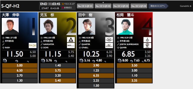 JPSA第1戦ショートボード本戦クオーターフィナル結果