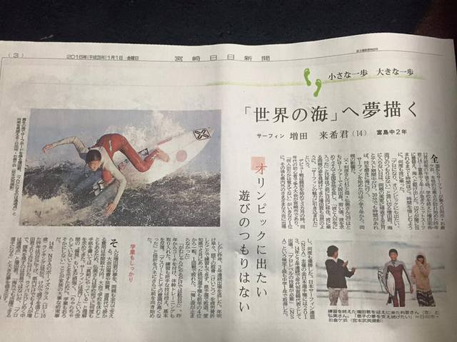 増田来希:宮崎日日新聞掲載&脇田貴之Waimea by Naoya Kimoto
