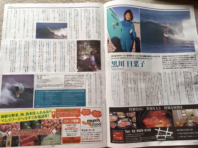 オーストラリアにサーフィン留学中の黒川日菜子ちゃんが オーストラリア日本語新聞 cheersに紹介された記事が載ったそうです。 彼女のFB