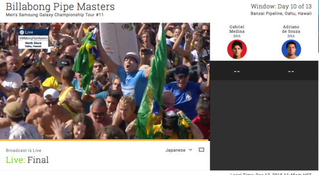 ノースショアパイプラインにて行われているパイプマスターズ 先程、セミファイナルが終了し、第1ヒートでミックファニングが敗退 そして、ヒート2でメイソンホーと対戦したエードリアーノソーザが僅差で 勝ち上がり、見事ワールドタ […]