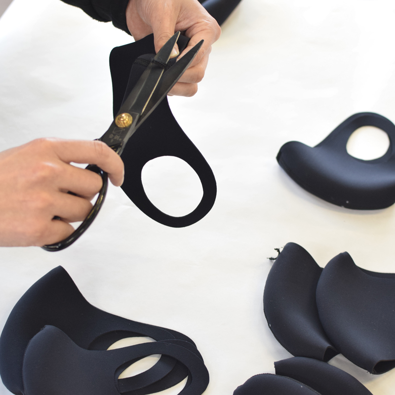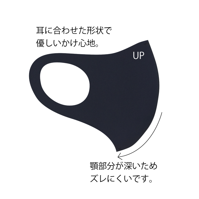 鼻、口部分に合わせた立体的なカットで高いフィット感があります。