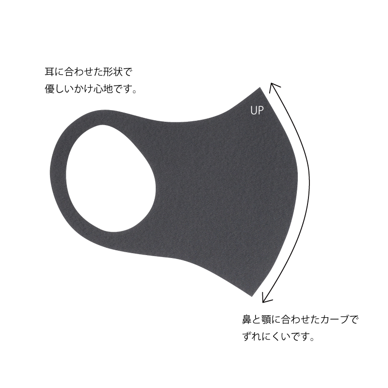 鼻、口部分に合わせた立体的なカットで高いフィット感があります。