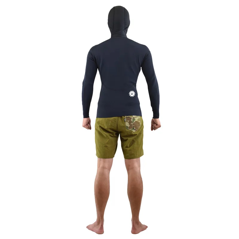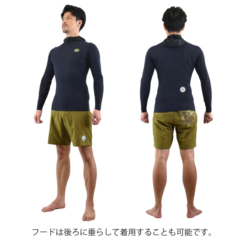■フード部分はUPF50+のラッシュガード素材を採用し、日焼けをガード。