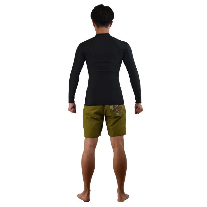 ■胸以外はUPF50+のラッシュガード素材を採用し、日焼けをしっかりガード。