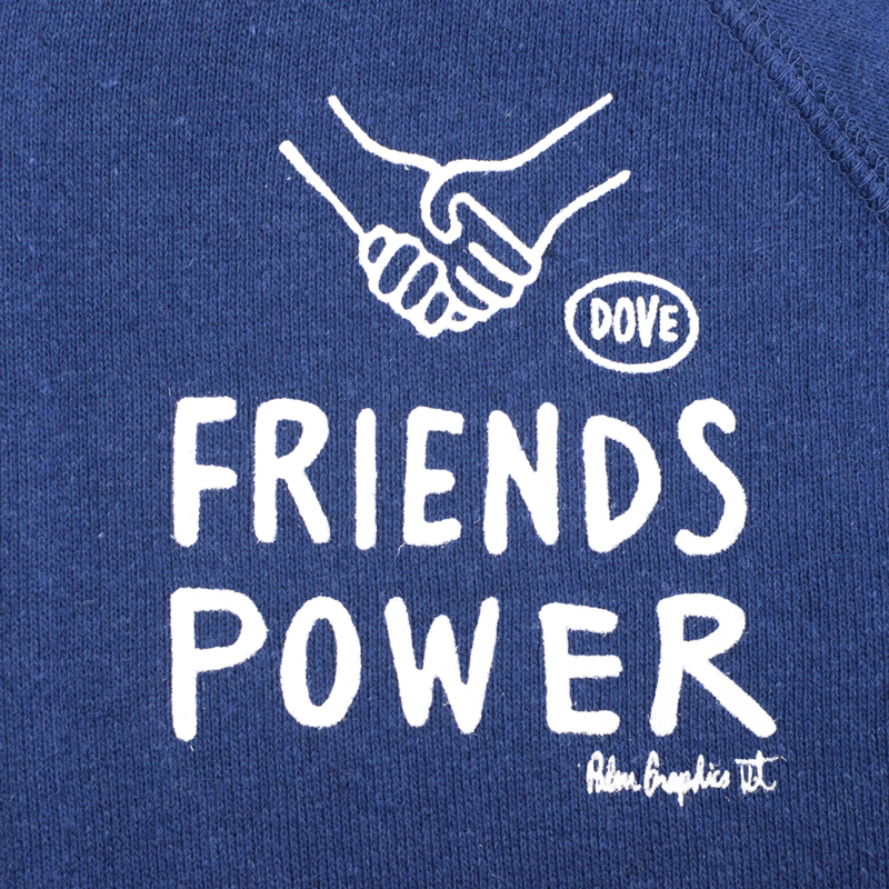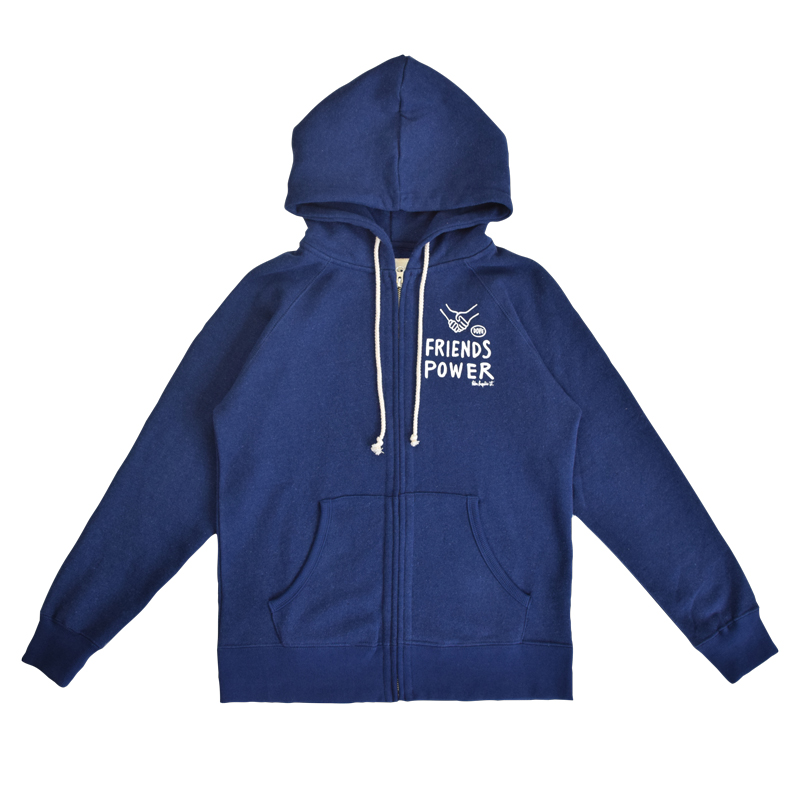 左胸にはサーフアートで知られるKoji Toyoda氏デザインの「FRIENDS POWER」をプリント。