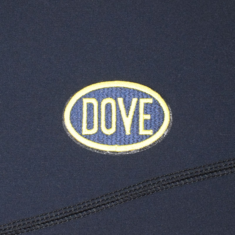 ■DOVEオリジナルデザイン:左胸には定番カラーのワッペン、右腰にはD-lite専用ロゴ入り。