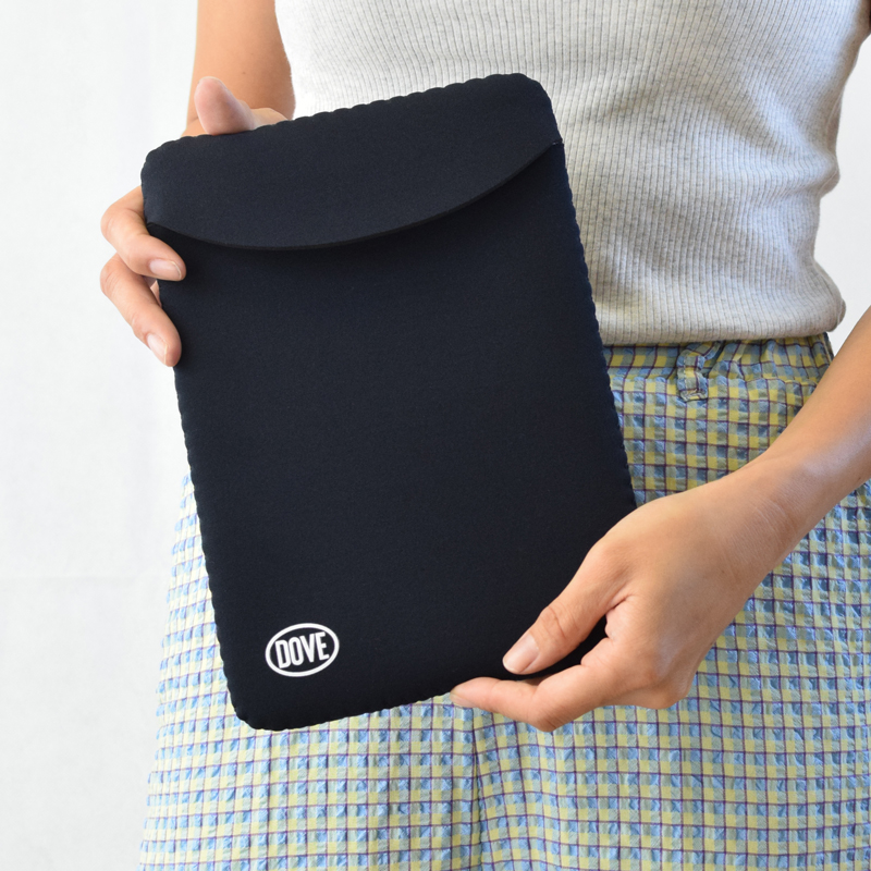 ウエットスーツ素材のクッション性を生かしたタブレットケース。
