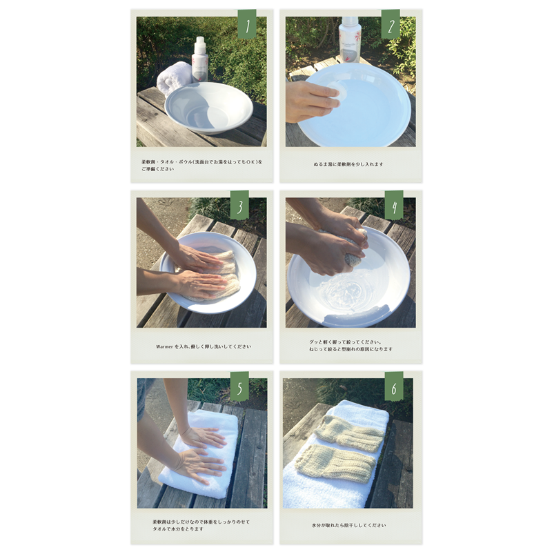 3)ウォーマーを入れ、優しく押し洗いをしてください