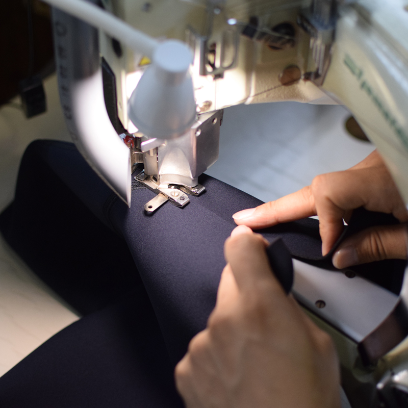 縫製は両面に凹凸の無いフラットシーマ仕上げ。