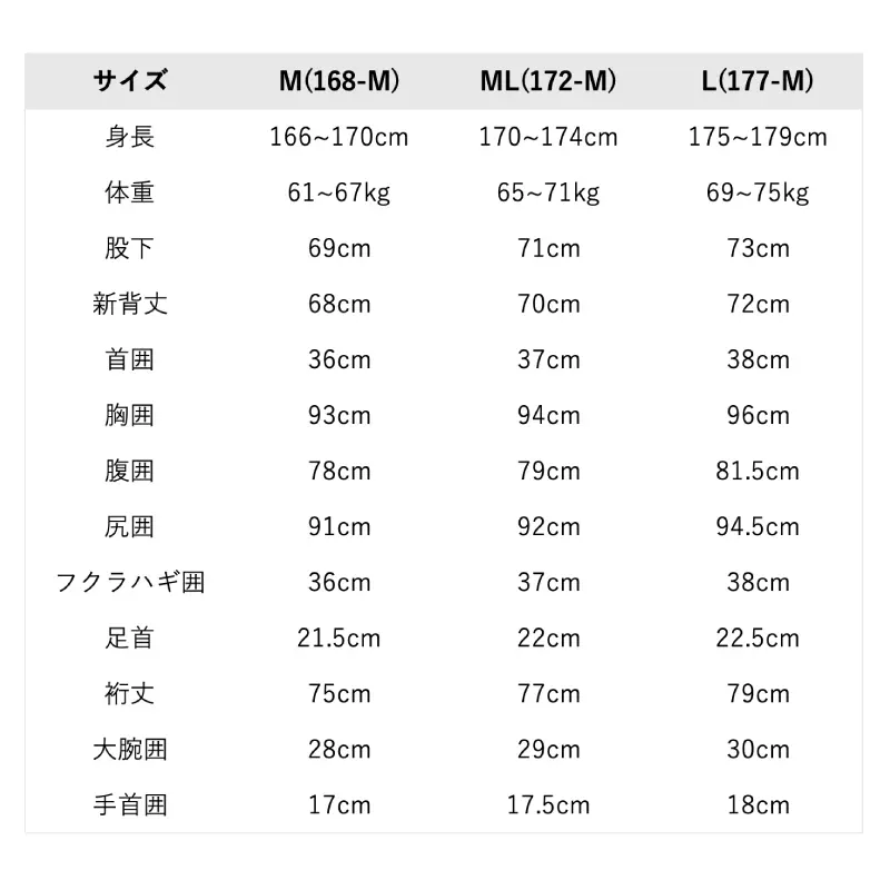使用しているサイズは近年の受注データをベースに統計学の専門家監修の元、作成された日本初ウェットスーツ用DOVEオリジナル日本人向けサイズチャートです。