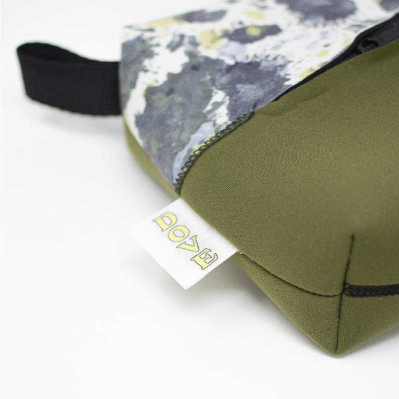 ウェットスーツに使用されるネオプレン素材の廃盤生地や端材を使用した、DOVEオリジナルのサステナブル商品。