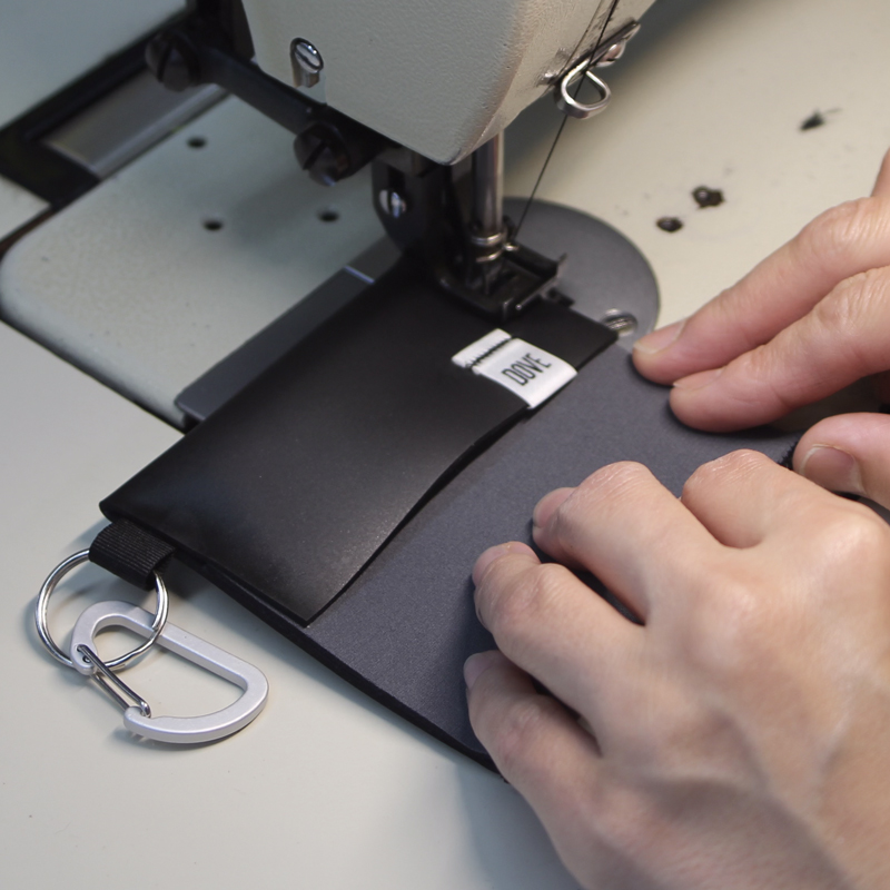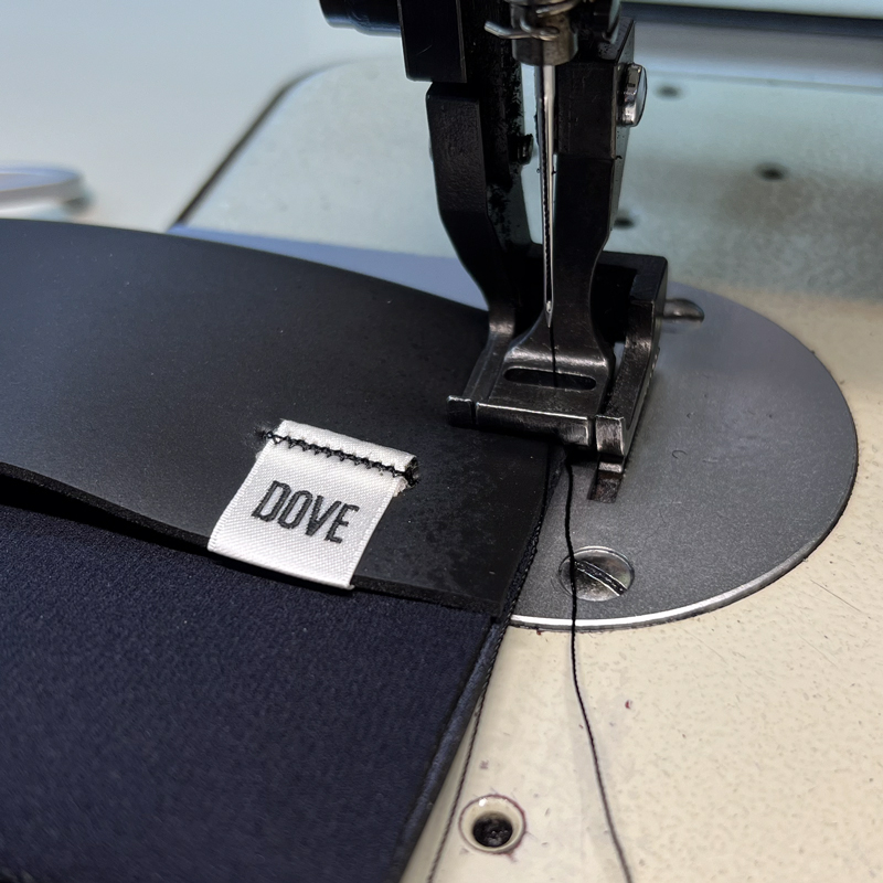 ウェットスーツに使用されるネオプレン素材の廃盤生地や端材を使用した、DOVEオリジナルのサステナブル商品。
