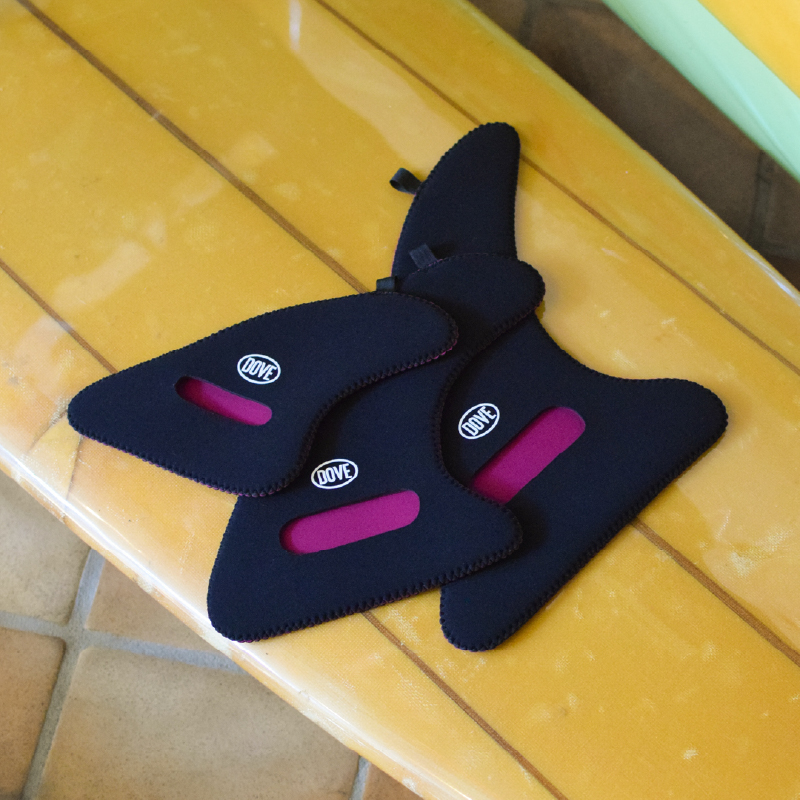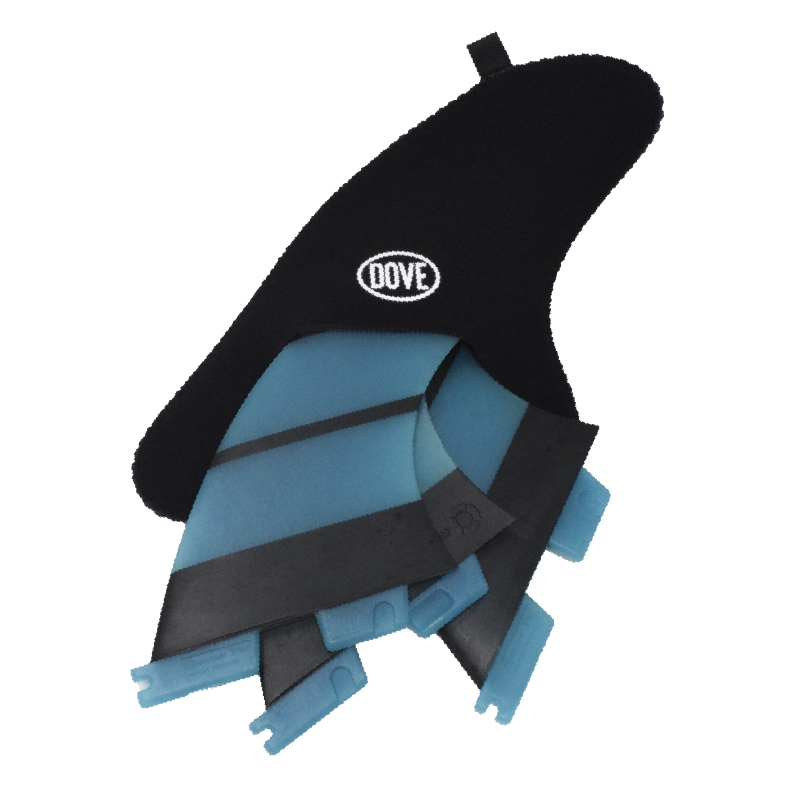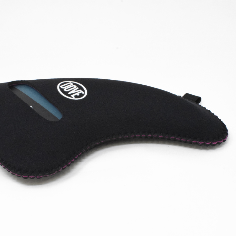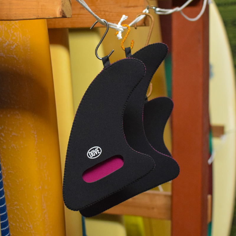 ストックのフィンを収納したり、サーフィンへ行く時の持ち運びケースとしてお使いいただけます。ループがあるのでフックなどにかけての収納も可能。入れる部分から中が見えるため入っているフィンがすぐにわかります。DOVEオリジナルロゴ入り。