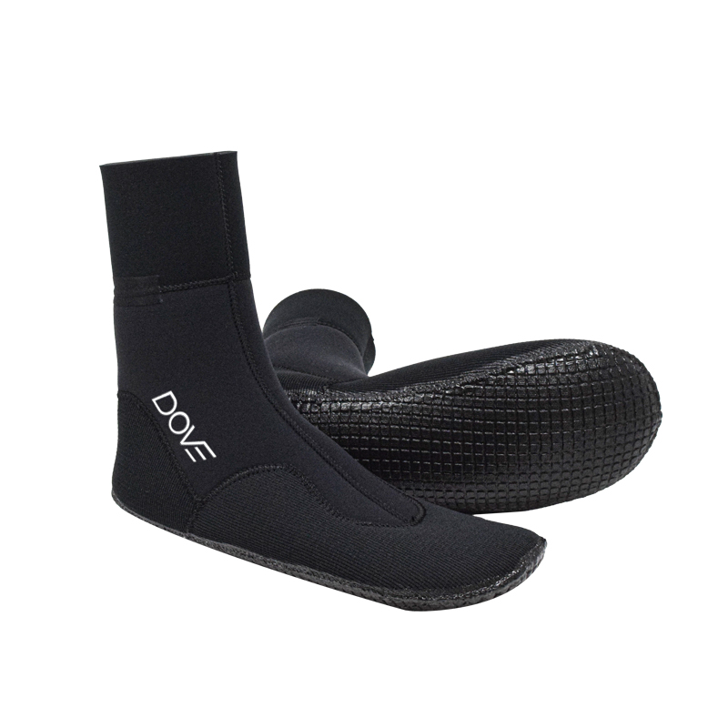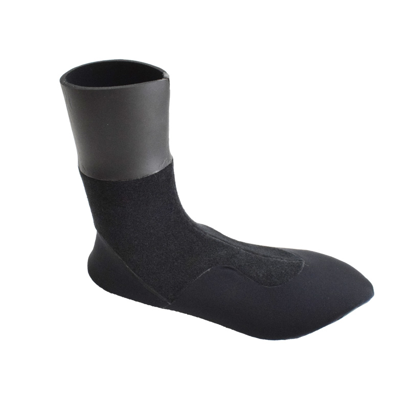 足首の内側にはフラットスキンを採用。水の侵入を軽減させます。メインのベース部には保温性の高い起毛素材を使用しいるので、保温性も兼ね備えました。