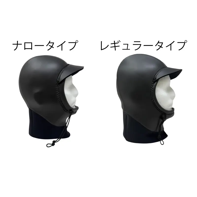 ツバに程よい硬さのメッシュスキンを採用。しなやかになった事で長時間の着用でも違和感がありません。頭部には高い伸縮性の「MX7」2㎜を使用。ウエットスーツと重なるネック部分には専用の1mmストレッチ素材を使用する事で首周りの動きやすさを大幅に向上。