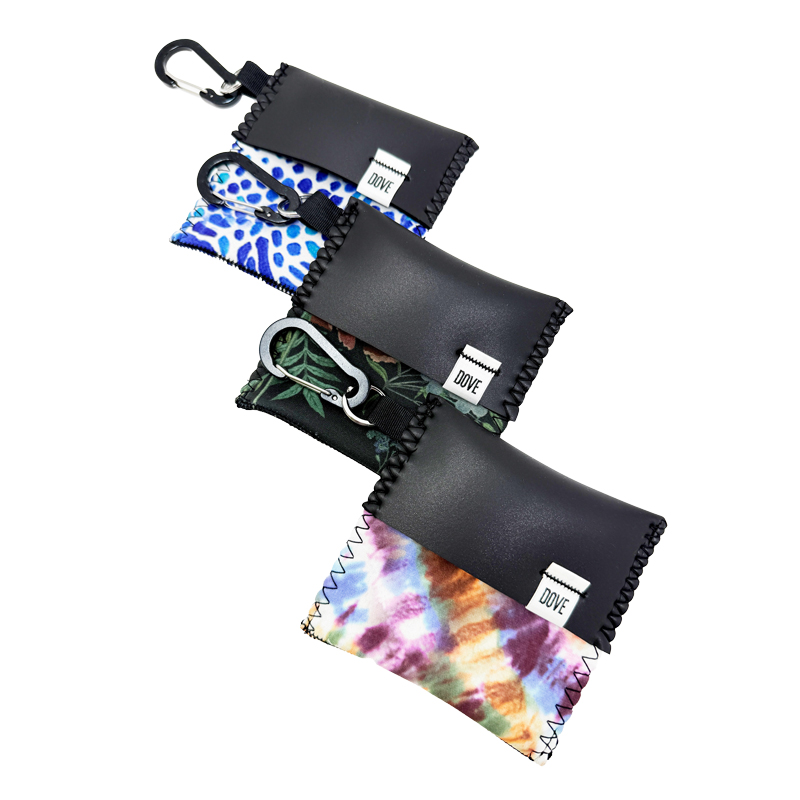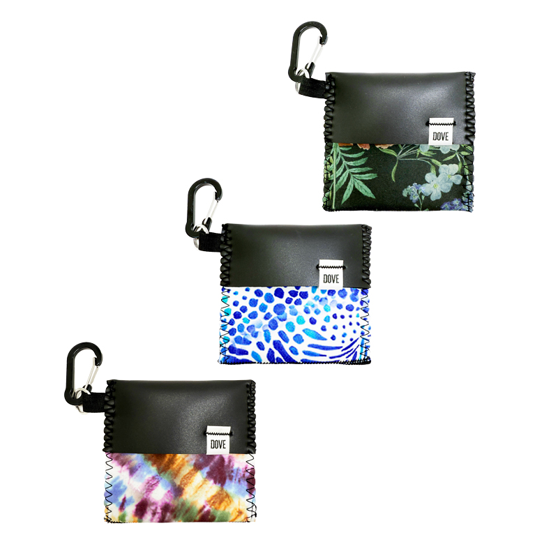 ウェットスーツに使用されるネオプレン素材の廃盤生地や端材を再利用した、環境に優しいDOVEオリジナル商品。