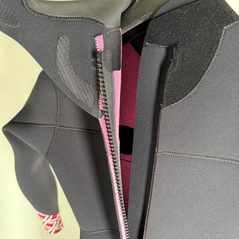 背面にファスナーを縦に配置。着脱がしやすく、肩回りのストレスが無い。