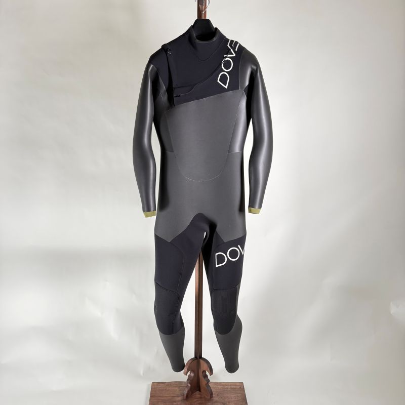 胸上部にショートジップを配置した「HALF CHEST ZIP」は、片側のみが開くエントリー構造を採用。 肩や首まわりは最小限のパーツ構成となっており、重なりが少ないため動きやすく、軽い着心地が特徴です。 フラップ部が外れる心配がなく、ハードなコンディションでも安定した着用感を実現。 ライディング時に開口部が後方に来る構造により、水の侵入を軽減します。 本商品は開口部が右向きのレギュラーエントリー仕様です。