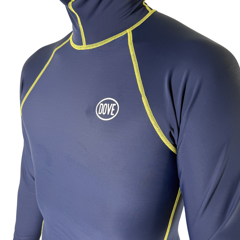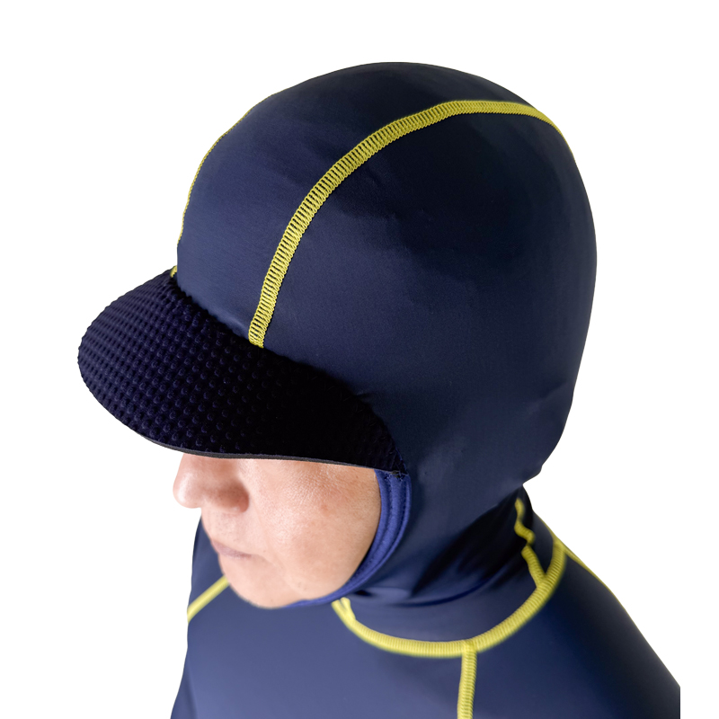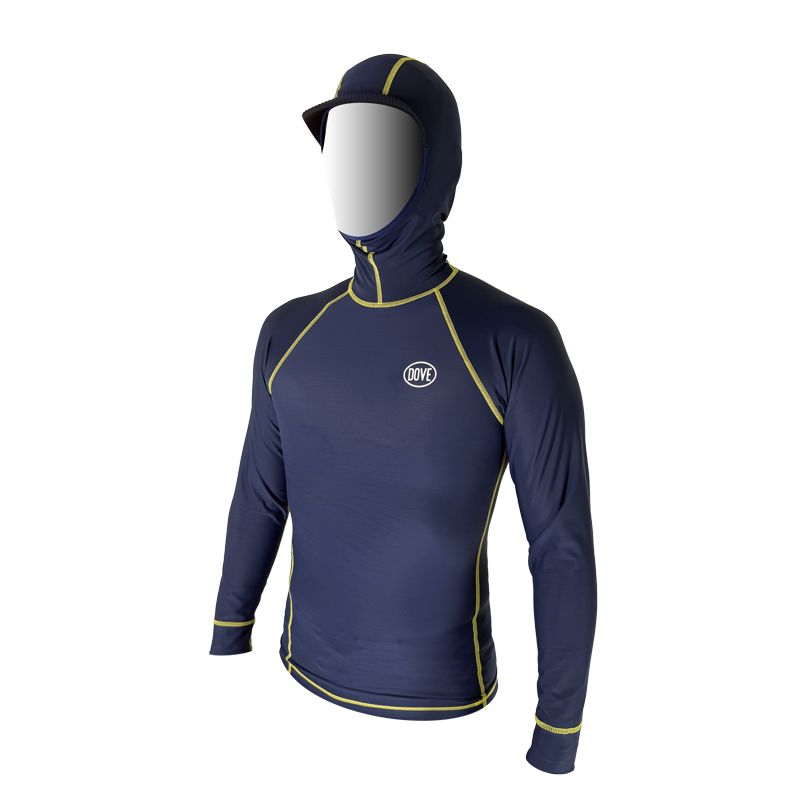 DOVEオリジナルのフード付きラッシュガード“ツバ付き”仕様。