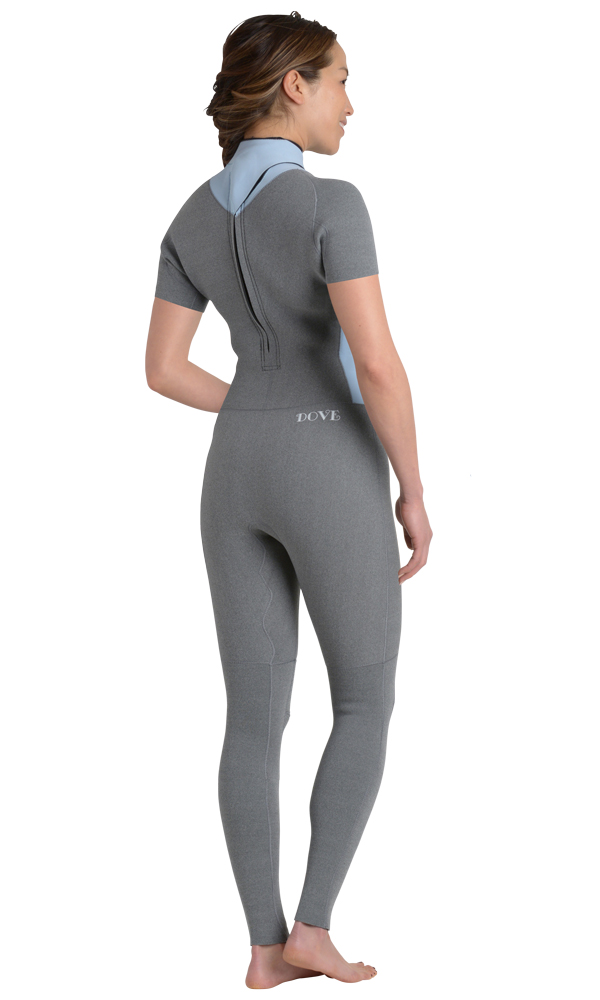 背面に縦型ファスナーを備えたバックジップタイプ。スムーズな着脱を実現し、肩まわりの動きを妨げず快適なフィット感をキープします。胸囲や腕まわりにファスナーがないため、全身が自然にフィットするシルエットに仕上げています。ファスナーには専用のジップアップテープが付いています。