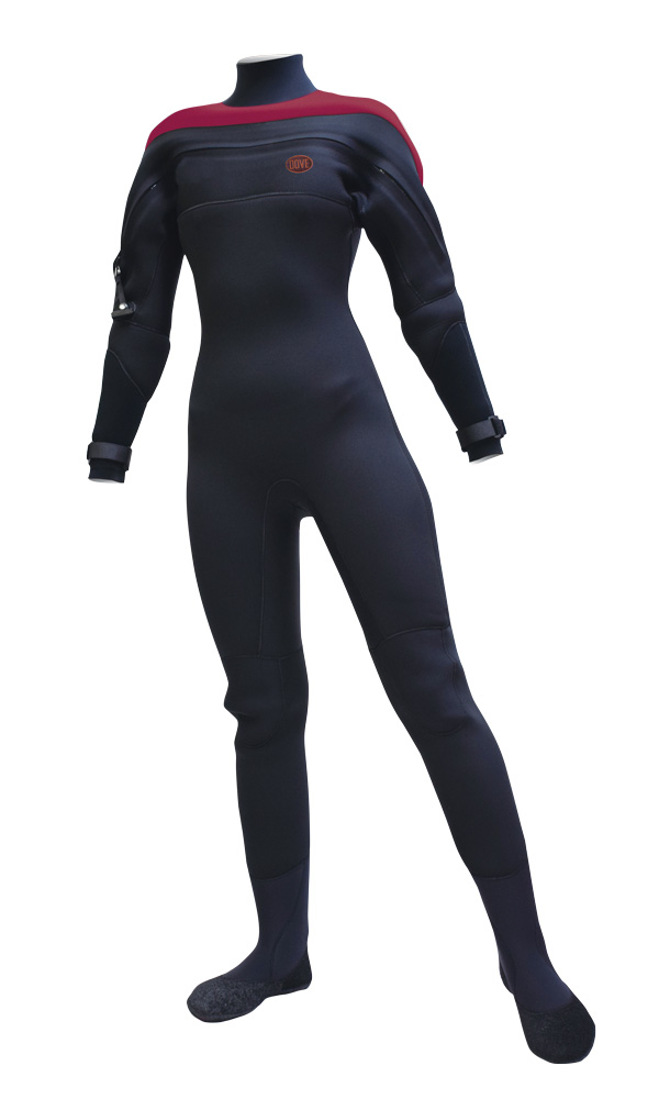 スーツ本体は、防水ファスナーは伸縮が無いので胸、脇周りに余裕を持たせた作りになります。