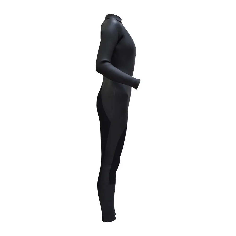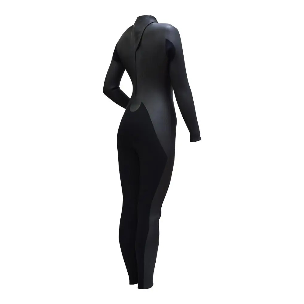 背面に防水ファスナーを備えたバックジップタイプ。スムーズな着脱を実現し、肩まわりの動きを妨げず快適なフィット感をキープします。胸囲や腕まわりにファスナーがないため、全身が自然にフィットするシルエットに仕上げています。ファスナーには専用のジップアップテープが付いています。
